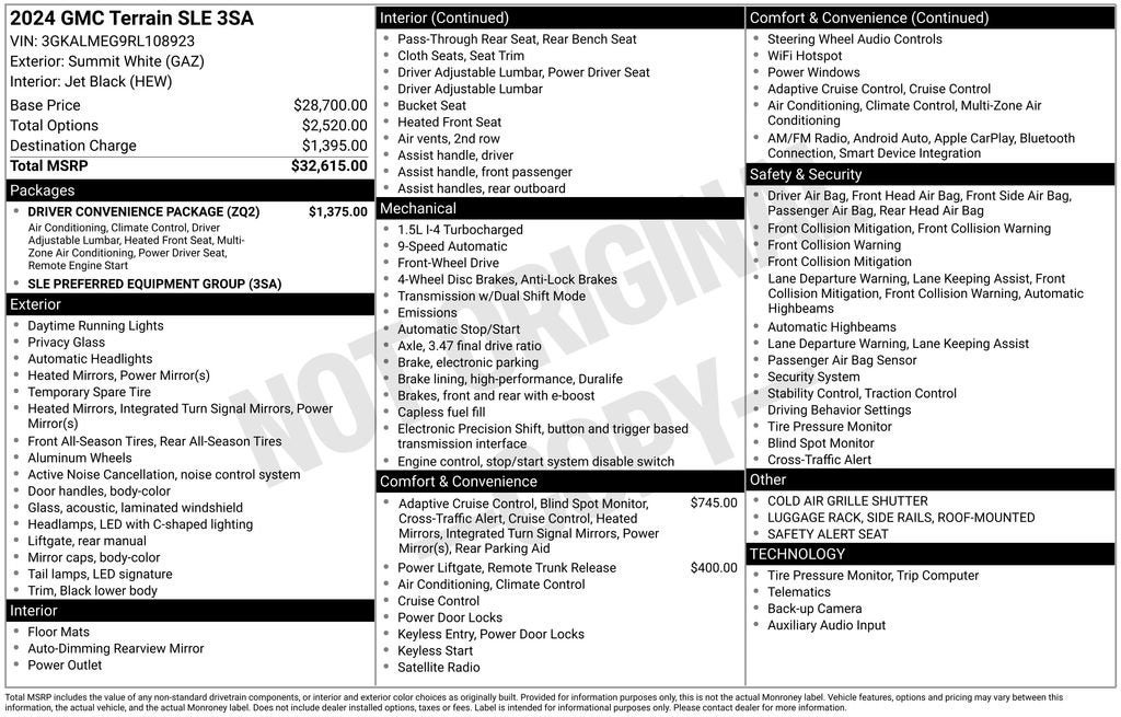 - SLE Preferred Equipment Group includes standard equipment